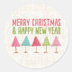 Crafted Christmas Trees, Pink Red Green Linen Runder Aufkleber
