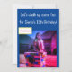Bild eines Mädchens auf einem Postfach auf blauem Hintergrund mit Party auf der Rückseite.