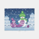 Vector Illustration von zwei bezaubernden Schneemännern aus Strickhütten und Schals aus Cartoon. Der große, beschissene Schneemann strickt einen übergroßen Schal für den Kleinen. Der Schal ist schon mehrmals um den niedlichen kleinen Schneemann gewickelt.