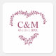 Cramberry Branches Heart with Initials Quadratischer Aufkleber