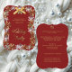 Cranberry Red Elegant Snowflake Corporate Holiday Party Einladungen mit einem Hintergrund von Cranberry rot mit Gold-Text, Gold und Silber Schneeflocken, und einen goldenen Bogen mit zwei Jingle Gells. Es ist einfach, Ihre Urlaubsinformation zu dieser schönen und eleganten Cranberry-, Gold- und Silberfest-Einladung hinzuzufügen, bevor Sie bestellen. Ob für ein kleines Unternehmen mit 10 Gästen oder für ein großes Firmenjubiläum mit tausend Gästen, diese hübsche Feier lädt Anzug Ihre Bedürfnisse ein!