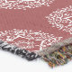 Dieses weiße Mandala sitzt auf einem dunkelroten Hintergrund. Die Farbe ist reich und warm. Teil der Sammlung Jarn Mandala.