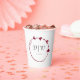 Mit diesen weißen Tassen aus Papier, die eine trendige Cranberry-Farbe, einen einfachen Herzkranz mit Bräu- und Bräutigam-Initialen und ein in Stilschrift bedrucktes Hochzeitstermin aufweisen, verleihen Sie Ihrem Hochzeitsfest Eleganz. Bearbeiten und ersetzen Sie die Initialen und das Datum mit Ihrem eigenen.