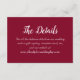 Cranberry Red Simple Style Wedding Details Begleitkarte