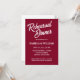 Einfache Einladungen zum Hochzeitsessen mit weißer, stilisierter Schrift auf einem trendigen, kranberroten Hintergrund. Bearbeiten Sie Ihre Einladungen, indem Sie Namen, Datum/Uhrzeit, Ort und Kontaktinformationen mit Ihren eigenen Namen ersetzen. Wählen Sie Ihre Einladungsgröße und Ihren Papierstil aus.