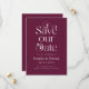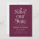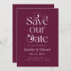 Stilvolle und elegante Save the Date-Karte mit Typografie-Text, auf der "rett unser Datum" in Cranberry-Rot steht. Sie können ein Foto auf der Rückseite hinzufügen.