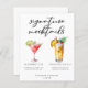 Dieses elegante, charakteristische Mocktails-Menü Papier-Blatt bietet eine einfache schwarze Tyopgrafie über 2 niedlichen Drinks und ihre Zutaten für Ihre Hochzeit Bar. Eine Cranberry-Süsse oder nicht-alkoholische kosmopolitische und eine Jungfrau Piña Colada fügen einen coolen Flair zu Ihrem Bar Menü. Füllen Sie bitte die Namen des Paares und das Datum für seinen Empfang aus.