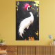 Elevate your space with a captivating canvas print showcasing an elegant crane illustration, a harmonious blend of artistic creativity and timeless symbolism. At the heart of the design stands a serene white crane, its elongated neck and delicate plumage depicted with a painterly grace and sculptural finesse. Accentuated by a vivid red crown and striking pink crest, the crane resonates with the iconic red-crowned species celebrated in East Asian art.