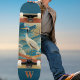 This monogrammed skateboard features a stunning white red and black crane against blue and teal mountains with fall trees tipped in gold. Heavily influenced by traditional Japanese art (Ukiyo-e style), this red-crowned crane symbolizes longevity and good fortune. One monogram initial appears in gold-tipped orange with bands of gold and orange as accents. Make sure to type your information in the Personalize box.