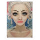 Das ist mein originelles Werk einer Fee mit Kurbelsicht, sie ist mit einem blassblauen Hintergrund gemalt, sie hat ihr Haar in einem glamourösen Pompadour got, sie hat winzige Flügel, Rose und Perlen.