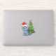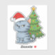 Cranky Grey Tabby Cat Red Hat Christmas Tree Aufkleber