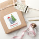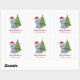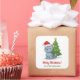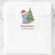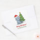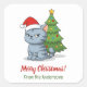 Cranky Grey Tabby Cat Red Hat Christmas Tree Quadratischer Aufkleber