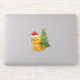 Cranky Orange Tabby Cat Red Hat Christmas Tree Aufkleber
