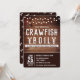 Dieses rustikale braune Design zeichnet sich durch einen rustikalen Holzhintergrund mit Saitenbeleuchtung und Crawfish Grafik aus. Diese Einladung ist ideal für Abschlüsse, aber der Text kann auch für Geburtstage, Hochzeiten, Wiedersehen und jedes andere Party angepasst werden, bei dem Sie Krebse, Krebse, Krabben oder Hummer kochen können. Genießen Sie Ihren Langusten und Meeresfrüchte-Kochen!