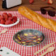 Party-Schüsseln aus Papier mit einem Bild von Langusten Kochen mit Mais und Kartoffeln.