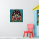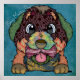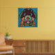 Einzigartiges Berner Hundegesicht mit kühnen, bunten abstrakten Mustern auf aquamarinem Hintergrund. Beliebt bei Hundeliebten und Liebhabern von Haustieren und Rettungshunde.