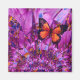 Ein einzigartiges Bild von einer Blume und einem orangefarbenen Schmetterling, der herumfliegt.