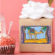 Ein originelles Kamelgemälde, das aus Aquarellstiften, Tinte und Acrylfarbe hergestellt wurde. Großartige Aufkleber für Kamelfreunde.