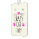 Die verrückte Katzenfrau in Großbuchstaben singt handgeschriebene Schriftart-Schrift mit zwei neonrosa Pfotendrucken und einem rosa Pink, das als Katzennadel mit schwarzen Whiskers und zwei dreieckigen Ohren dient.