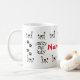 Wenn Sie keine verrückte Katzenfrau sind, kennen Sie vielleicht jemanden, der es ist. Diese Tasse könnte ein ideales Geschenk für jemanden schwer zu kaufen, für den nur passiert mit Liebe Kätzchen! Zwei Reihen schwarz-weiße Katzen, eine um die Oberseite, eine um die Unterseite, Pfoten Drucke und die Formulierung verrückte Katzenfrau. In der Mitte steht der Name der verrückten Katzenfrau. Sie können die Farbe und den Stil des Drucks in Anzug ändern. Coole, einzigartige Idee für ein Weihnachts- oder Geburtstagsgeschenk.