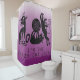 Duschvorhang mit drei schwarzen Katzen spielen mit einem Ball aus Garn und schwarzem Text, dass ich bin die Crazy Cat Lady!
