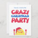 Die sonnige Einladung mit einer verrückten, gelben Kreatur, die eine Gabel und einen Löffel hält, und der Text "Du bist zu meinem verrückten Weihnachts-Party eingeladen", geschrieben in funky Briefen. Geschmacksmuster: