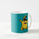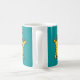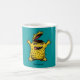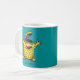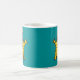 Ein verrücktes, hirnloses Hühnermonster, personalisierter Mug mit einer Zeichentrickdarstellung, gezeichnet in gelb und blau grün.
