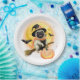 Crazy Happy Halloween Mops Reiten eines fliegenden Pappteller