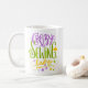 Crazy Sewing Lady Lila grüne gelbe Buchstaben Kaffeetasse