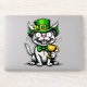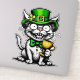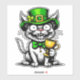 Funny St. Patrick’s Day Katzenaufkleber mit einer sonderbaren Katze, die einen grünen Kobelhut und eine Krawatte mit Bugs trägt, während sie ein goldenes Goblet hält. Ideal für St. Patrick’s Day Feiern oder für alle, die Spaß und Katzen mit irischem Thema Lieben.