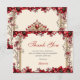 Cream and Red Golden Tiara Floral Quinceañera Dankeskarte