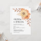 Invite your loved ones in style with this floral wedding invitation featuring soft cream and apricot Gerbera-style blooms nestled in one corner, surrounded by delicate daisies and muted taupe leaves. The warm, romantic tones create an elegant and timeless design perfect for boho, rustic, or garden weddings. Personalize your names, date, and venue for a sophisticated keepsake that reflects your love story. W004
