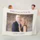 Große Decke mit Ihrer Hochzeit / Verlobung Foto, Namen und Datum auf einem cremefarbenen Hintergrund. Kontaktieren Sie uns für Hilfe bei der Anpassung oder der Anpassung von Produkten.