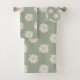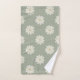Ein dunkles Blume-Muster auf einem schlauen grünen Hintergrund. Karo aus dem passenden Duschvorhang in der Kollektion.
