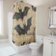 Der dunkelweiße Duschvorhang aus denim Halloween-Flickwerk mit gesteppten Fledermäusen im Flug. Eine bedrückte, grunge-artige Textur mit fetten Stichen schafft eine rustikale gotische Ästhetik. Ideal für Fledermausliebhaber, Gotik oder einzigartige Halloween-Geschenke.