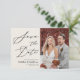 Elegante neutrale Creme Elegantes Script Modernes Foto Minimalistisch Hochzeit speichern das Datum Einladungskarte. Lass Familie, Freunde und Kollegen wissen, dass Sie Set ein Datum für Ihre Hochzeitsfeier mit dieser eleganten, stilvollen und modernen Hochzeit speichern Sie das Datum Einladungskarte. Alle Texte sind so vorbereitet, dass Sie sie einfach und schnell mit Ihren eigenen Details personalisieren können.