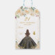 Dieses elegante und glamouröse Geburtstagsgeschenk-Tag kann mit einem Namen personalisiert werden. Das Design besticht durch eine wunderschöne Prinzessin mit brünettem Haar und feiner Haut in einem schwarzen Ball-Kleid. Der Text kombiniert handgeschriebene Skripte mit modernen serifenlosen Schriftart für ein elegantes und raffiniertes Aussehen. Die Blumenarrangements, Schmetterlinge und Goldkonfetti bilden die perfekte Mischung aus rustikal und schick. Das ist ideal für Geschenke und Gastgeschenke. Grafiken von www.etsy.com/uk/shop/SunflowerDayLove