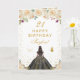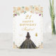 Cream Floral Dark Skin Girl Happy Birthday Karte