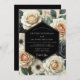 A romantic arrangement of lush, creamy roses and delicate white blossoms creates a soft, elegant feel. The botanical elements are rendered in a realistic style with hints of muted green foliage, evoking a timeless and sophisticated mood for your special day.
