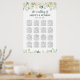 Das stilvolle Hochzeitsplakatdesign beinhaltet ein Monogramm der Braut- und Bräutigamen sowie das Hochzeitsdatum, einen individuellen Vorlagentext für Tischnummern und Gastnamen. Freuen Sie sich auf ein elegantes, florales Aquarellbild mit bemalten Rose, ranunkulösen Blume und Blätter. Das Farbschema umfasst neutrale Farbtöne wie Weiß, Creme, Gold, Grün und Dunkelgrau / Weich Schwarz. Ideal für einen Frühlings- oder Sommeraufenthalt.