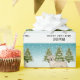 Desteis originelle Cartoon Illustration eines niedlichen englischen Cremes Labrador Retriever Rasse Hund. Der Hund befindet sich in einer Winterlandschaft mit drei grünen Tannenbäumen. Der Hintergrund ist ein blaues bis weißes Gefälle, das das Design des kalten Wintertages verleiht. Es gibt einen personalisierbaren Textbereich, der jetzt lautet: "Frohe Weihnachten!" zusammen mit einem individuelle Name.