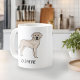 Die freundlich gesinnte Hundezucht Labrador Retriever wird von vielen geliebt und dieses Design von Destei ist hier, um das zu feiern. Das Design zeigt Desteis originelle Cartoon-Illustration einer englischen Creme Farbe Labrador Retriever Rasse Hund. Der Hund hat einen freundlichen Gesichtsausdruck, der von ihren großen Diskettenohren gerahmt ist. Unter dem Hund befindet sich auch ein personalisierbarer Textbereich für einen Namen oder einen anderen benutzerdefinierten Text. Der Hund und die benutzerdefinierte Textvorlage werden auf jeder Seite der Tasse platziert.