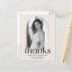 Moderner Abschluss danken Ihnen die Postkarte mit dem Foto des Absolventen, gerahmt durch einen cremefarbenen, bogenförmigen Rahmen. "Danke" wird in schwarz modernisierten kursiven Schriften dargestellt. Personalisieren Sie die Vorderseite des trendigen Abschlusses danke Postcard, indem Sie den Namen des Absolventen, den Namen der Schule und Abschluss Jahr. Die Postkarte kehrt zurück, um Ihre Rücksendeadresse und benutzerdefinierte Nachricht anzuzeigen.