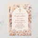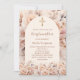 Eine moderne, stilvolle und romantische Einladung für eine Bestätigung. Creme, pfirsichfarbener Hintergrund, Bogenrahmen, mit cremefarbenen Blume verziert. Personalisieren und fügen Sie Ihren Namen und die Details.