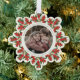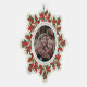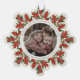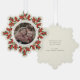 An elegant cream snowflake-shaped Christmas/Holiday paper ornament card with a ribbon to hang it up. Hand painted watercolor red berries and winter greenery form a border around your photo. All text is fully editable so you can easily change the message/style/color/size. The back has template text for a longer printed message - delete before ordering if not wanted. The backer can also be swapped out for a photo if you prefer. Other colors and coordinating items available.