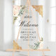 Amaze your guests with this elegant islamic wedding welcome sign featuring beautiful pastel flowers and intricate gold lace.
