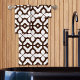 Elegant stylish bath towel set design featuring a seamless pattern in Moroccan style made of creamy white and brown geometric shapes.