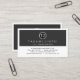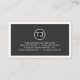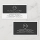 Cover features an upper dark grey layer that is encapsulated by a white rectangular frame. At the top is an empty white circle logo where you can place your name initials-monogram (You can use different sizes of fonts or styles to your liking). Below this is your prestigious name and job title with the contact details at the base of the card.