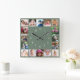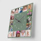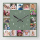 Create Your Own 16 Family Photo Collage Green Quadratische Wanduhr