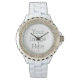 Weiße Damen Email Strassuhr